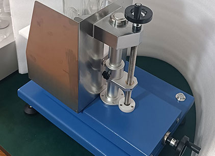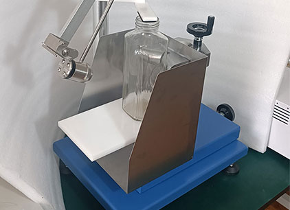 将试样放置在支撑台上,紧靠后支座。上下调节支撑台,将打击部位调节到需要检测的部位,再在水平向调节支撑台,使摆处于自由静止状态而打击物则轻微触及试样表面。以规定的冲击能量重复打击瓶身周围相距约120°的三个点,检查瓶子有无破坏。
