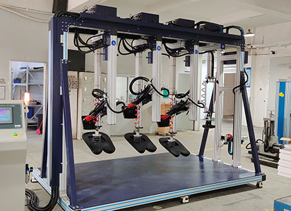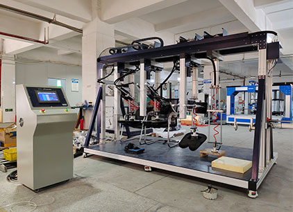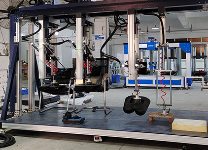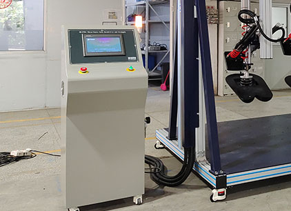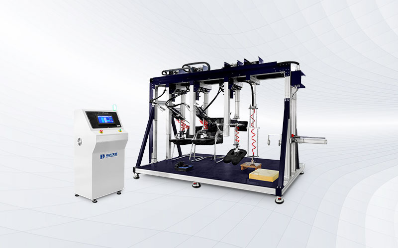 海达仪器 HD-F761 三座位沙发疲劳测试仪 可对单、双、三工位沙发的座、背进行耐久性及使用寿命的测试。试验时将一定形状、质量的施压模块,以规定的施压形式、频率,分别对座、背表面重复施压,通过这一方法模拟日常生活中人对沙发座位和靠背的压力从而测试沙发长期重复性载荷的承受能力。